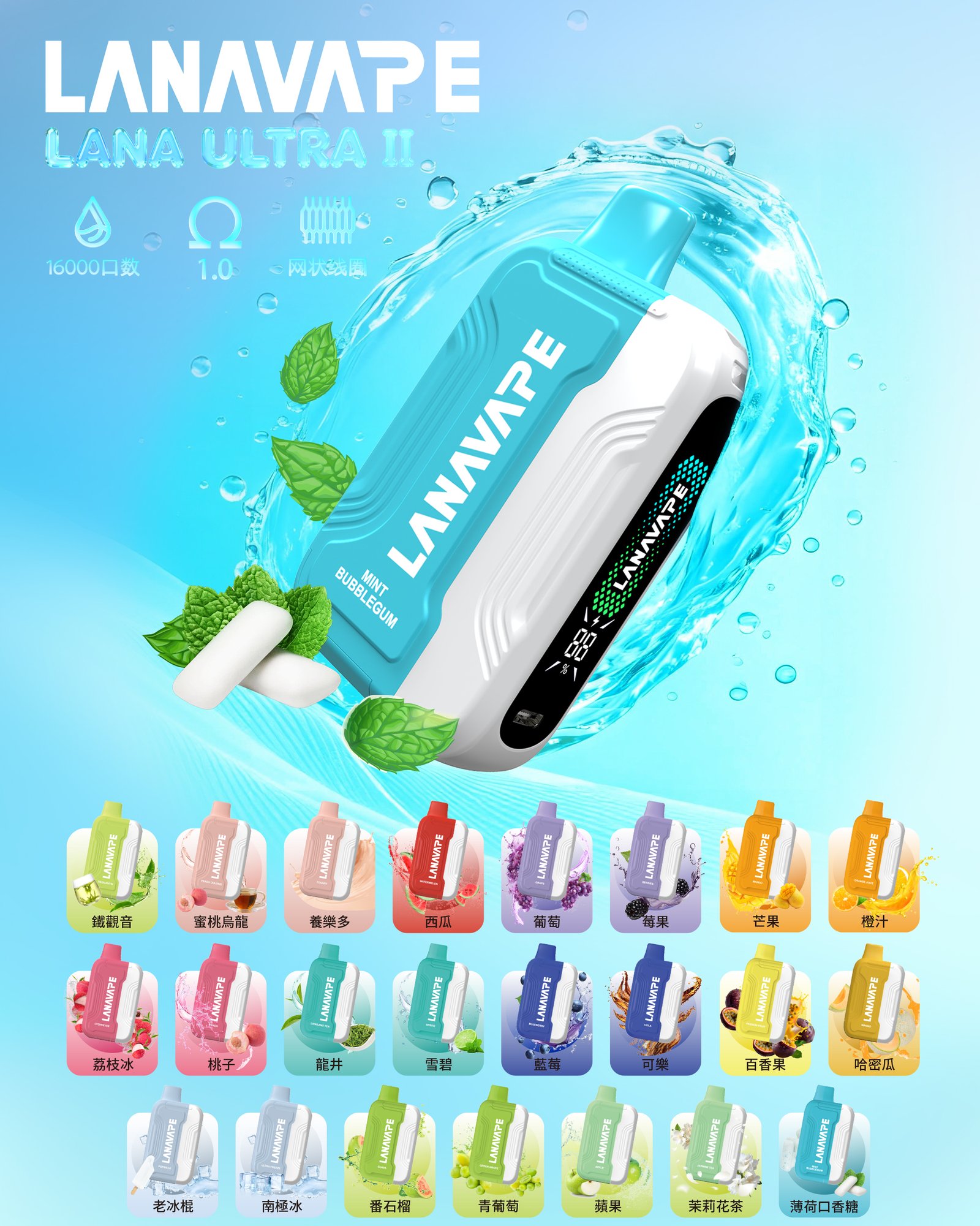 新品 LANA ULTRA二代電子烟 | 16000口抛棄式磁吸換彈【滿三盒送主機】